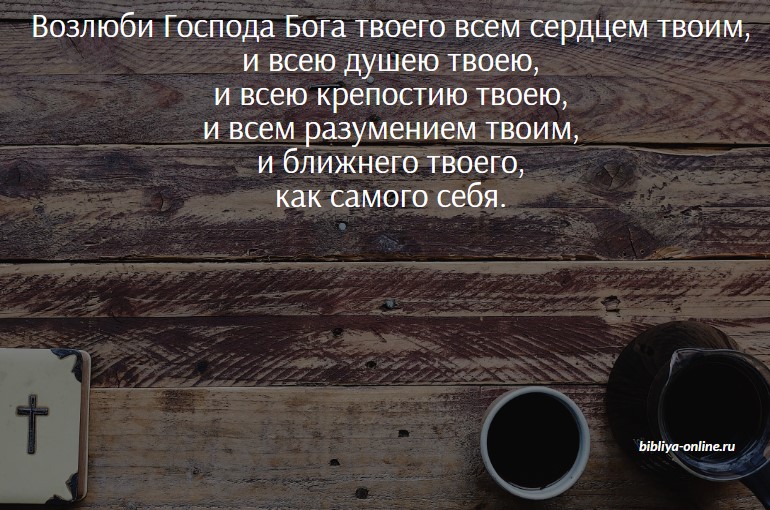 - Возлюби Господа Бога твоего всем сердцем твоим, и всею душею твоею, и всею крепостию твоею, и всем разумением твоим, и ближнего твоего, как самого себя. Иисус сказал ему: правильно ты отвечал; так поступай, и будешь жить. (Лк.10,25–28)