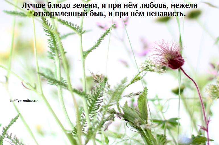 - Лучше блюдо зелени, и при нём любовь, нежели откормленный бык, и при нём ненависть. (Притч.15,17)