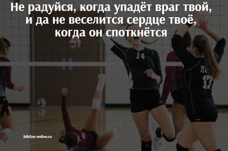 - Не радуйся, когда упадёт враг твой, и да не веселится сердце твоё, когда он споткнётся. Сол 24,17