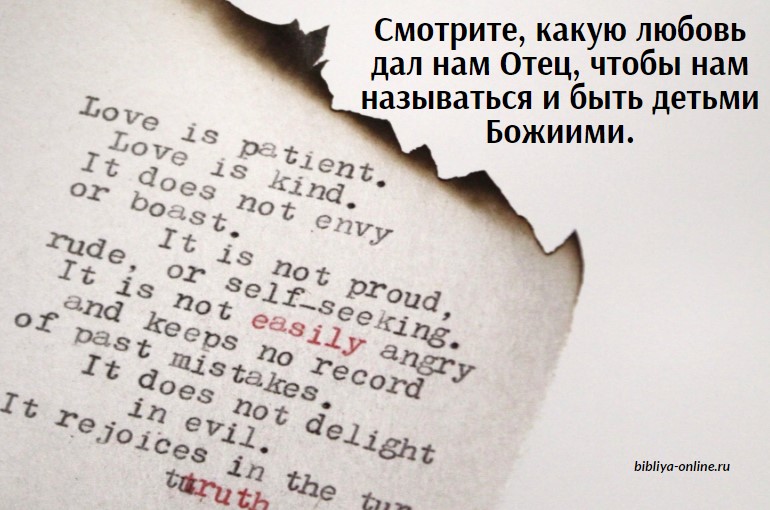 - Смотрите, какую любовь дал нам Отец, чтобы нам называться и быть детьми Божиими. (1 Ин.3,1)
