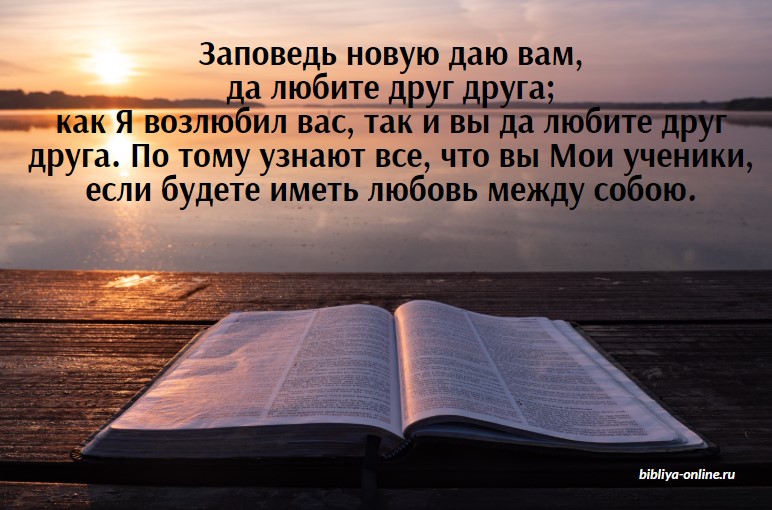 - Заповедь новую даю вам, да любите друг друга; как Я возлюбил вас, так и вы да любите друг друга. По тому узнают все, что вы Мои ученики, если будете иметь любовь между собою. (Ин. 13,34–35)